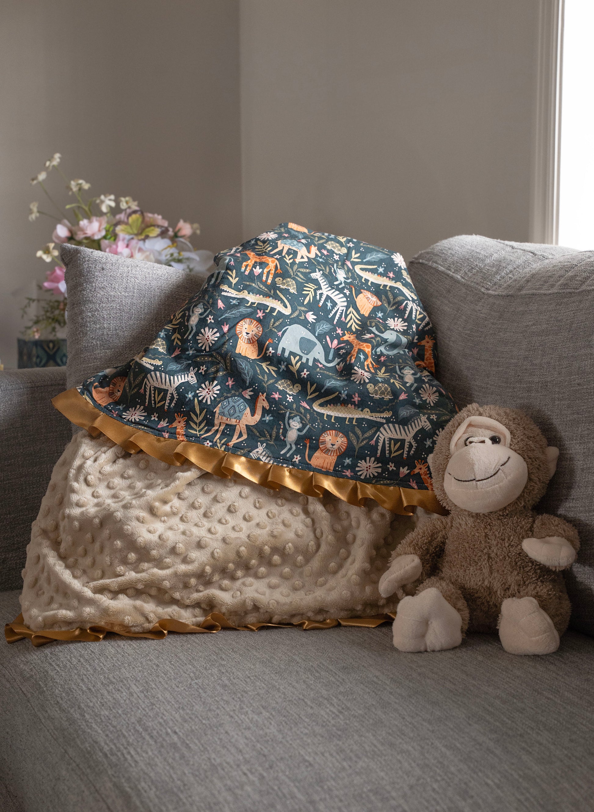 Adventure awaits with the Jungle Animal Baby Blanket! Soft, snuggly, and full of wild charm, this blanket is perfect for your little explorer to cuddle up with as they dream of the jungle!