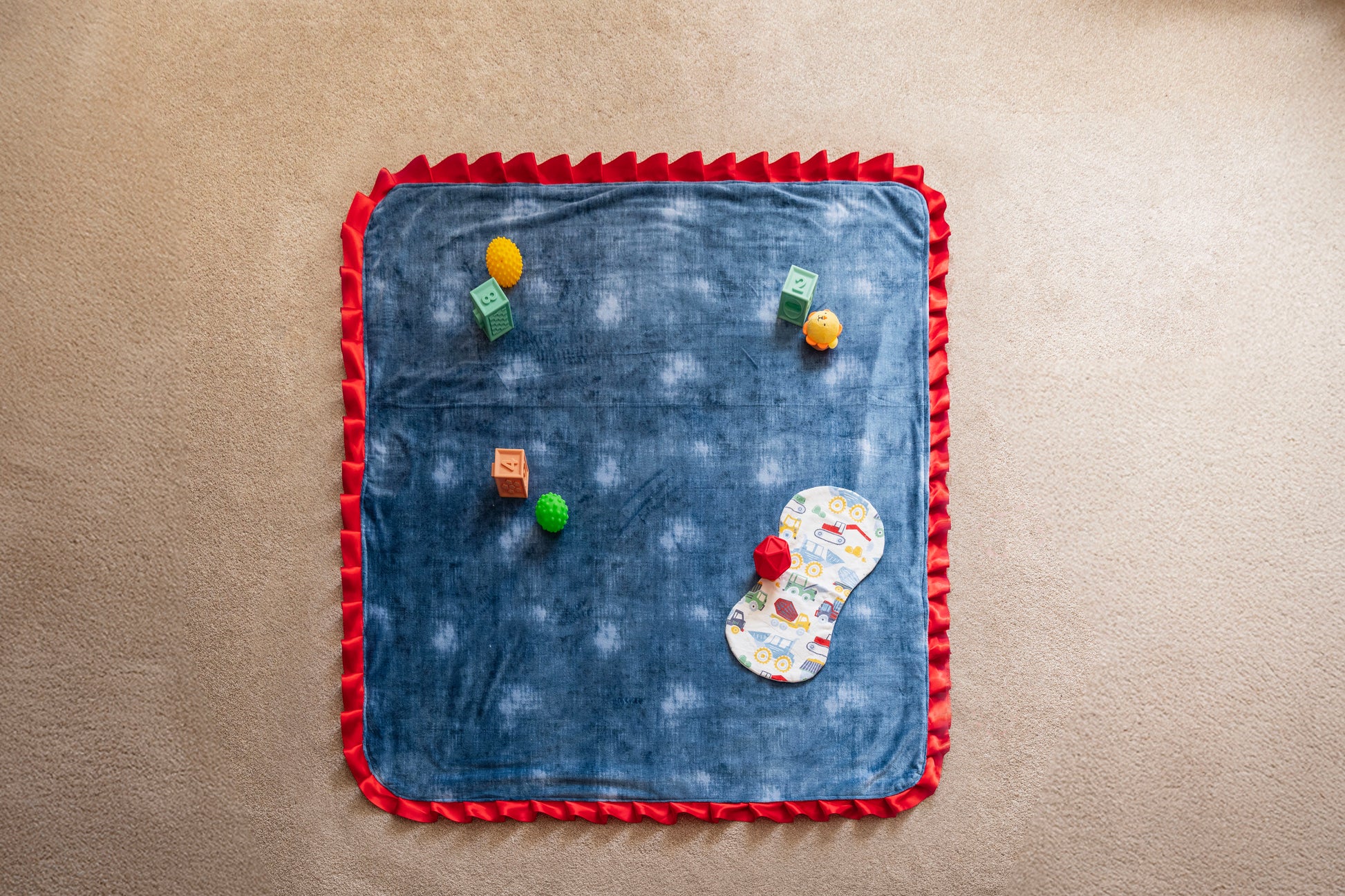45" x 45" Flannel on Minky fabric with a Satin Ribbon edge