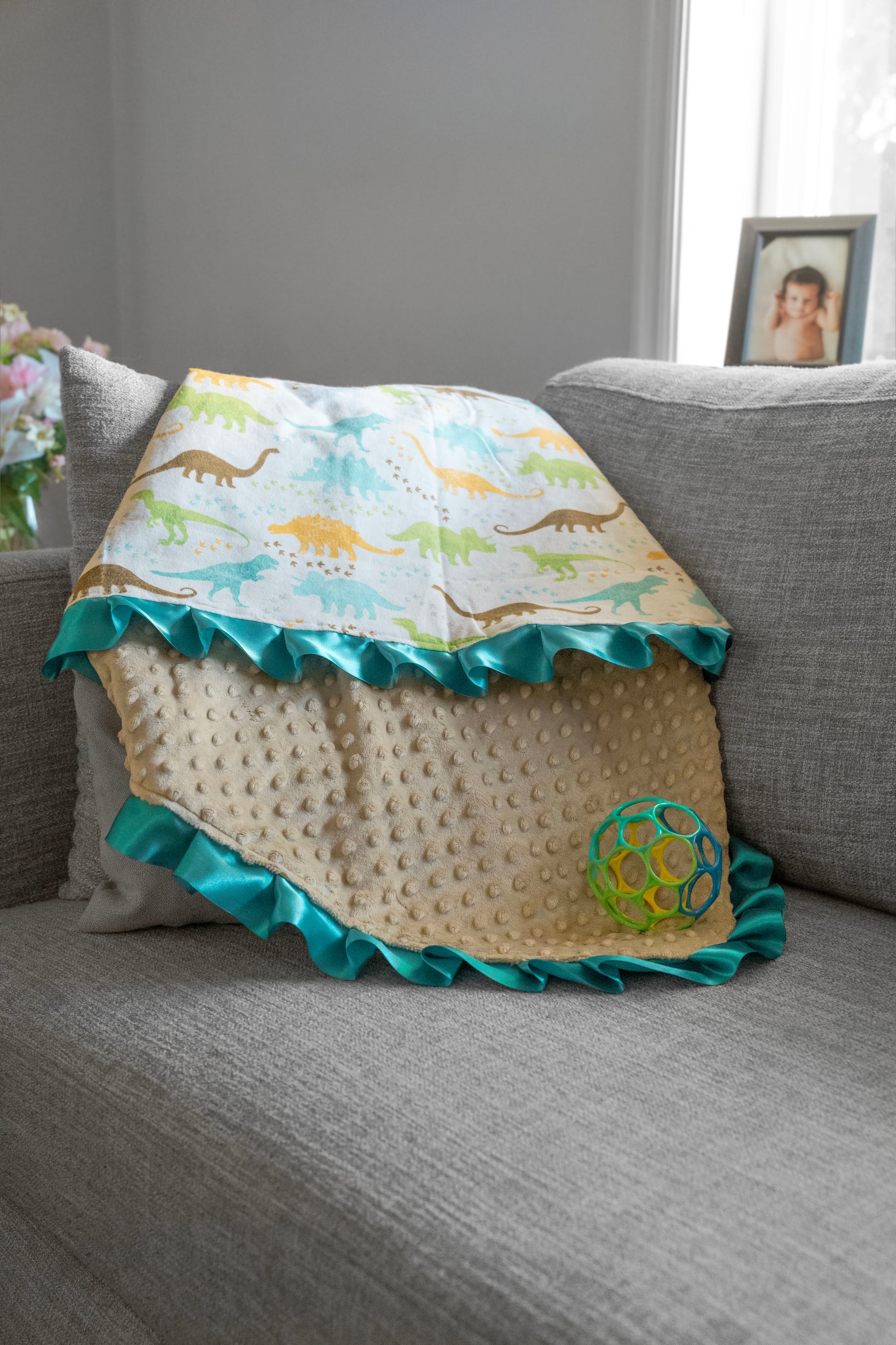 Snuggle up your little one with this soft nostalgic blanket! The Lil' Dino Baby Blanket is here to add a touch of prehistoric cuteness to nap time, playtime, and beyond.