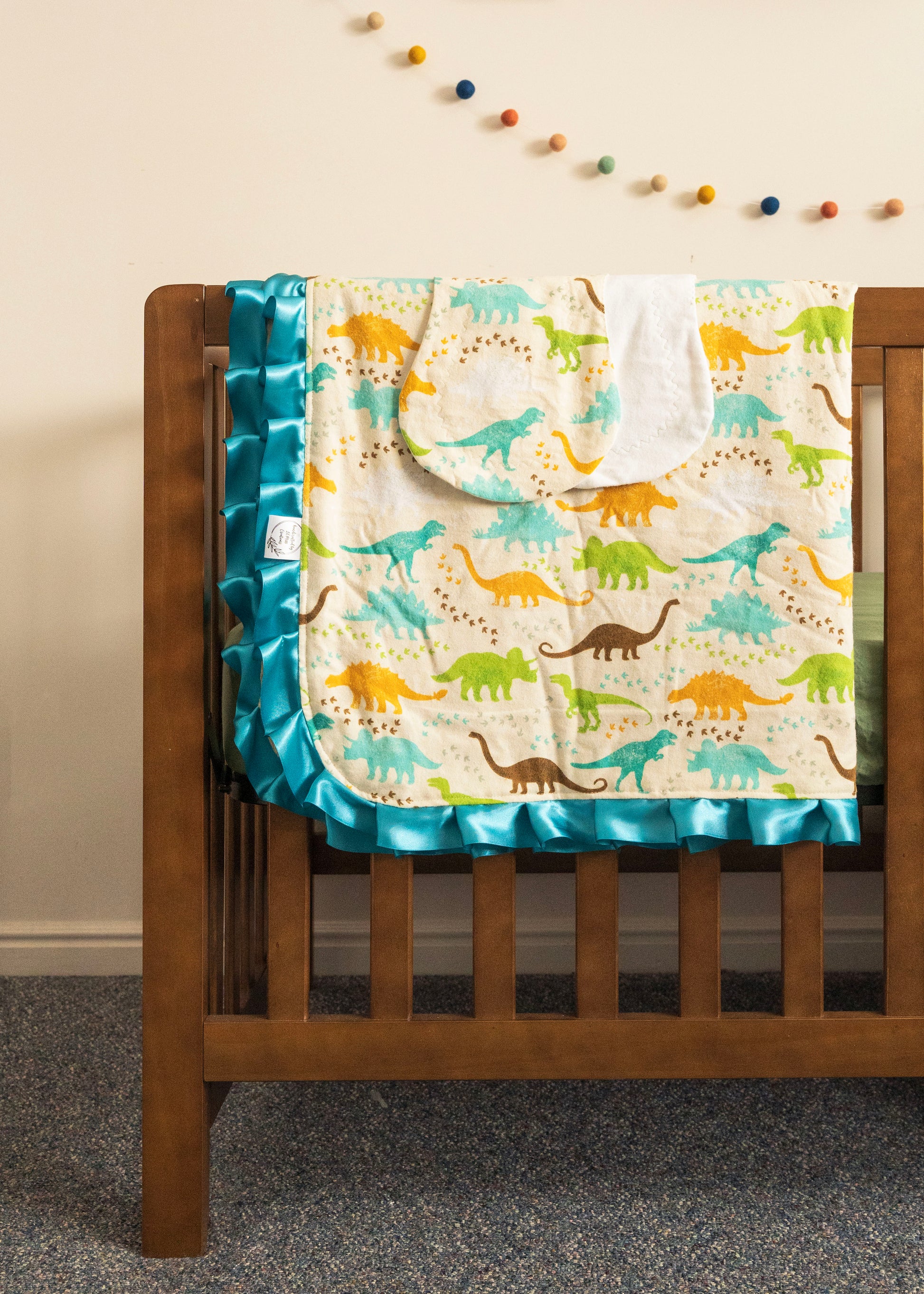 Blanket comes with two matching Burp Cloths