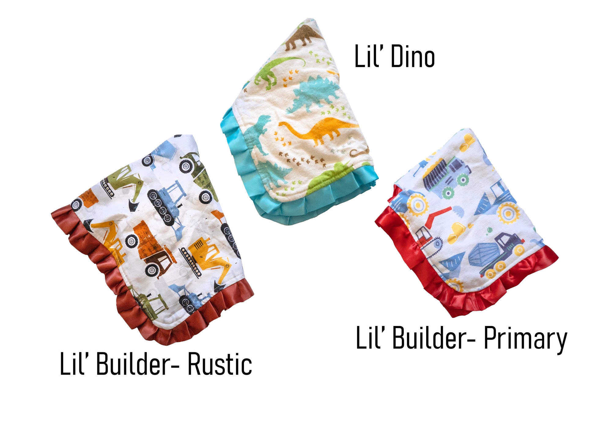 15" x 15" Flannel on Minky fabric with a Satin Ribbon edge
