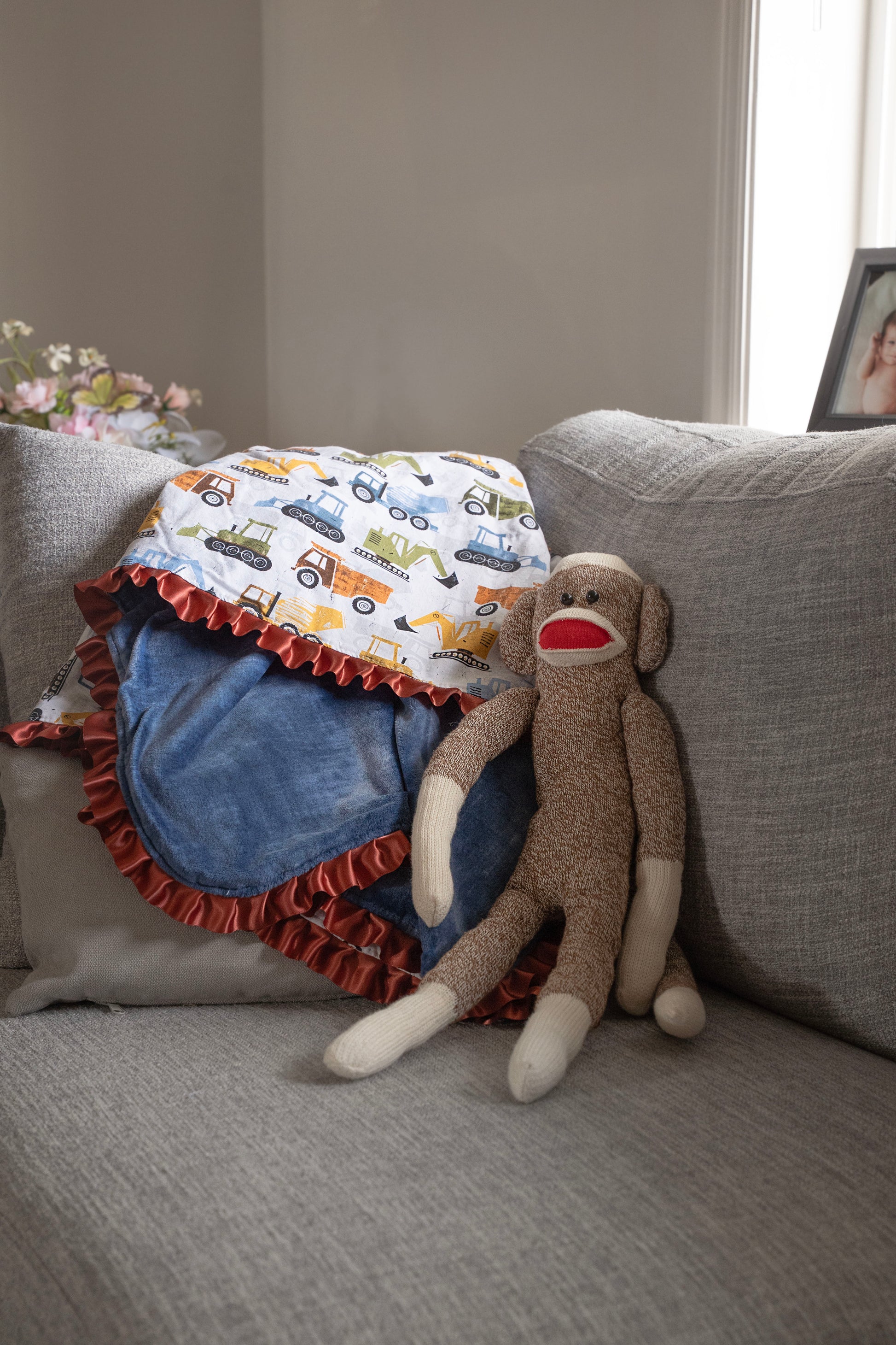 45" x 45" Cotton on Minky fabric and Rust Satin Ribbon edge