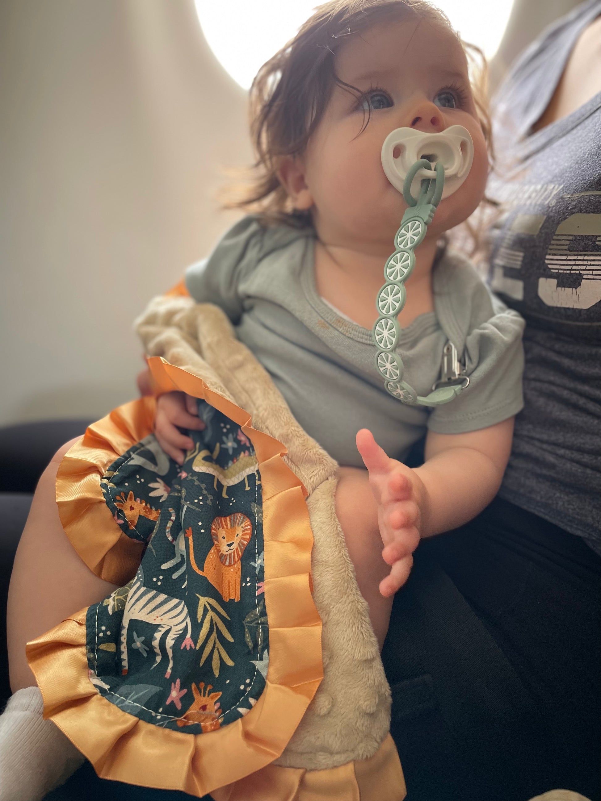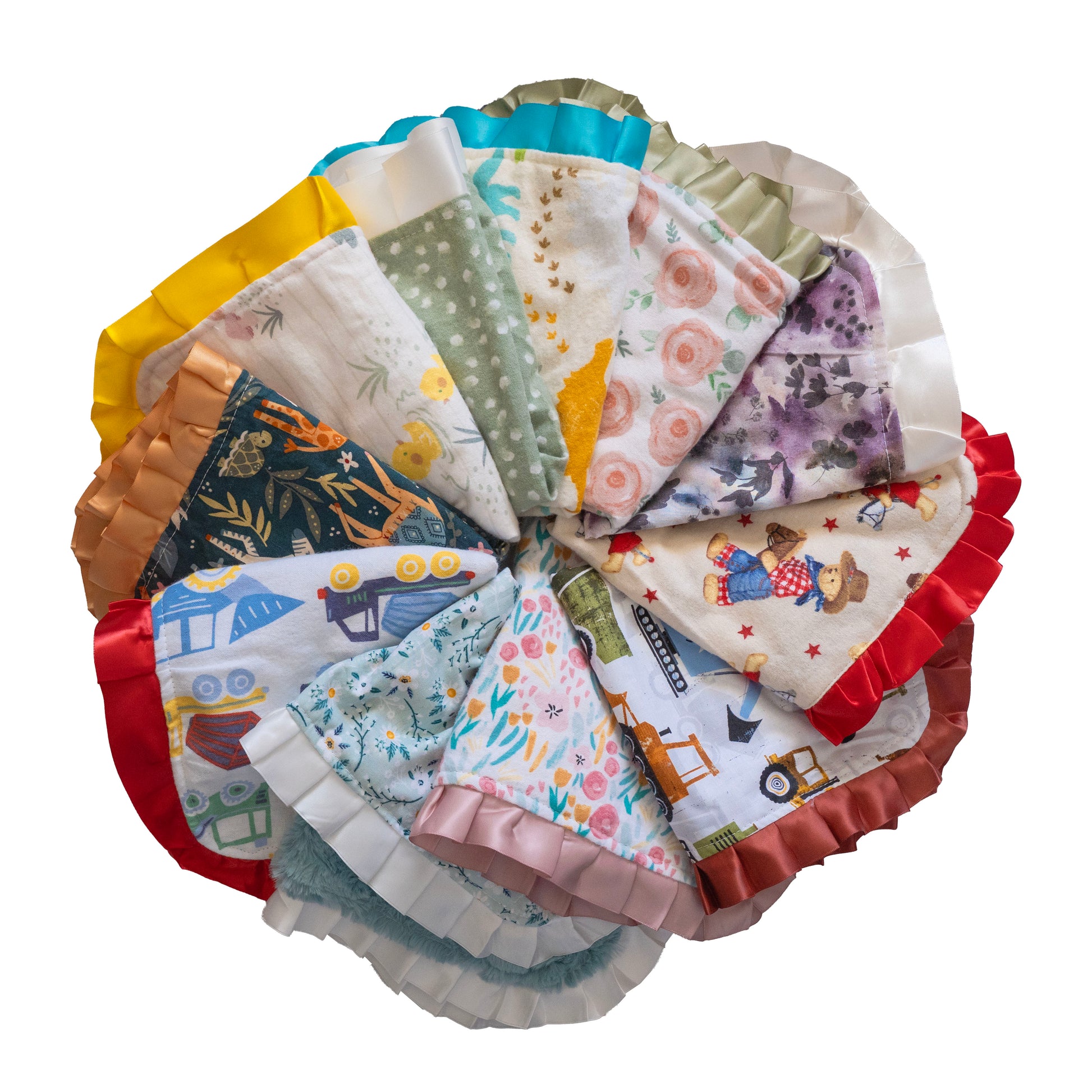 15" x 15" Cotton on Minky fabric and Rust Satin Ribbon edge