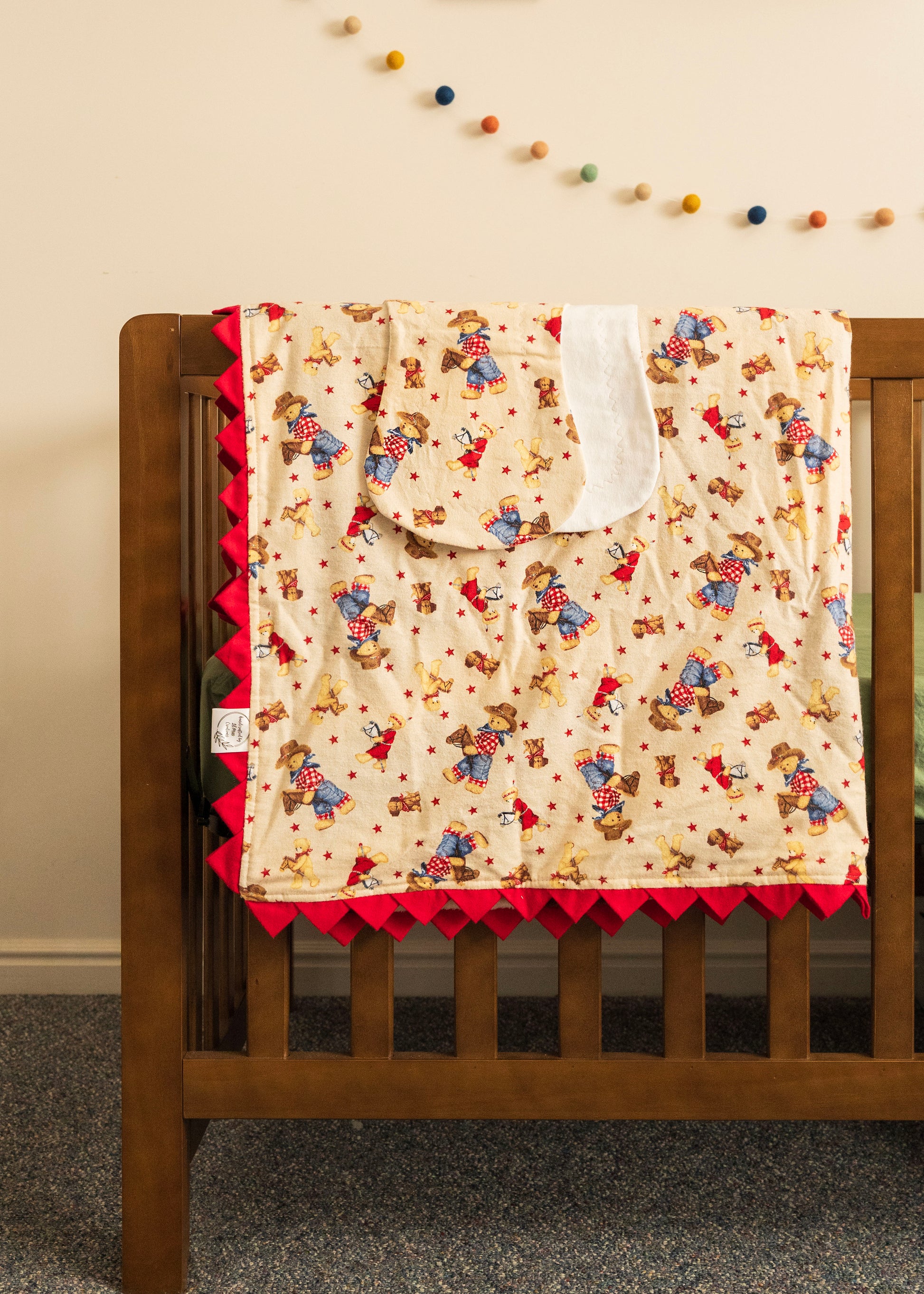 Yeehaw! Saddle up for comfort with the Vintage Teddy Baby Blanket! Soft, cozy, and full of wild west charm, this blanket is perfect for your little cowboy or cowgirl to snuggle up and dream of their next great adventure!