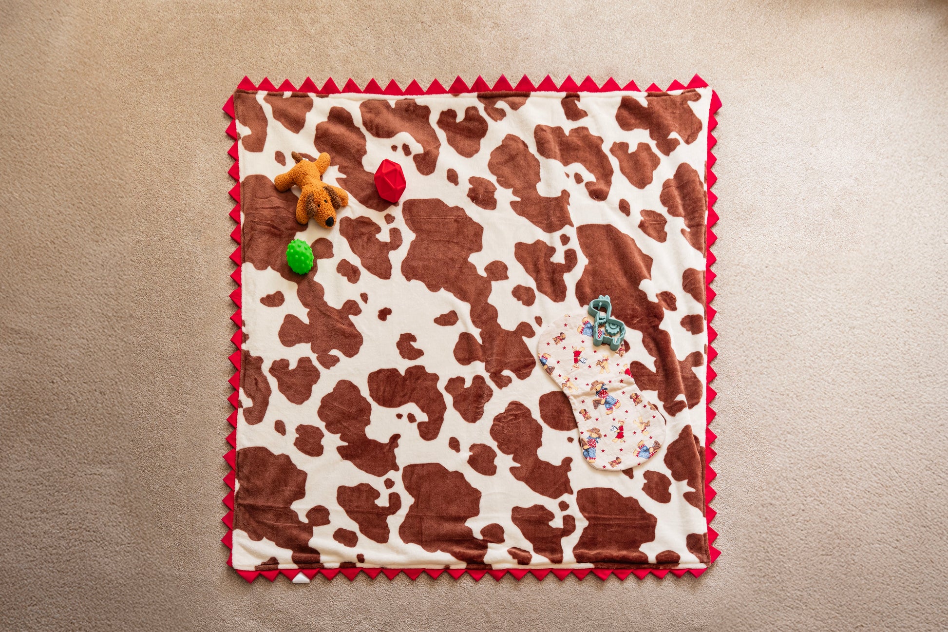 45" x 45" Flannel on Minky fabric with cotton Prairie Point edge