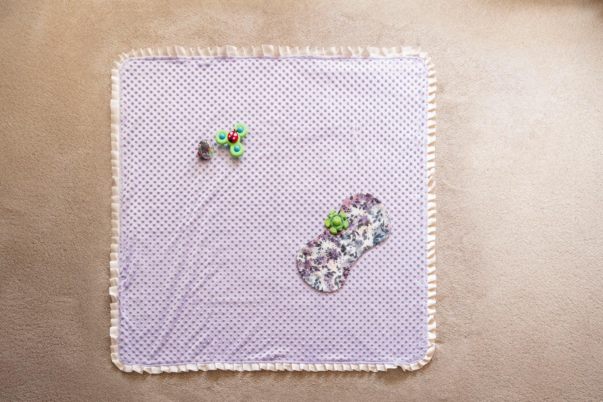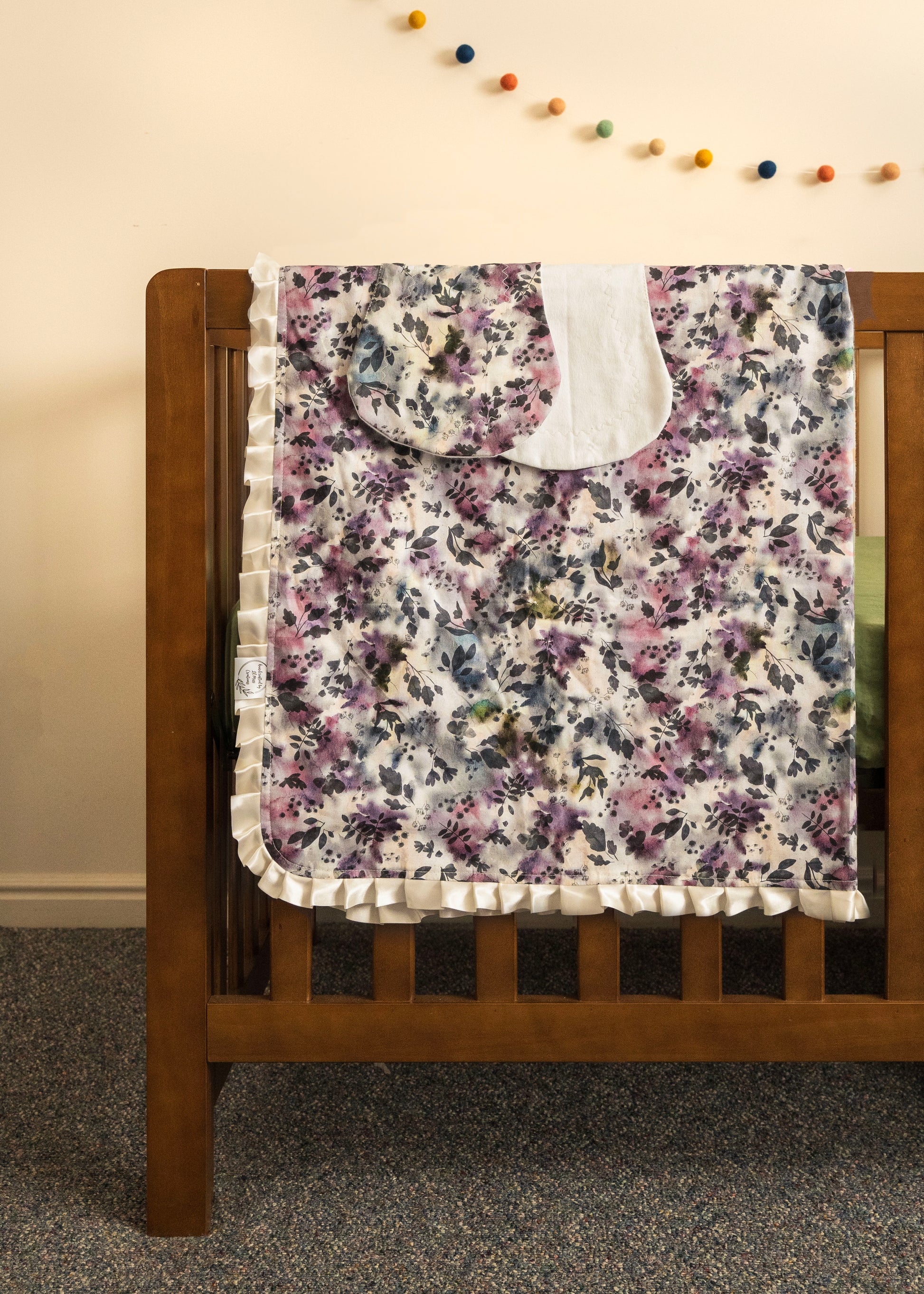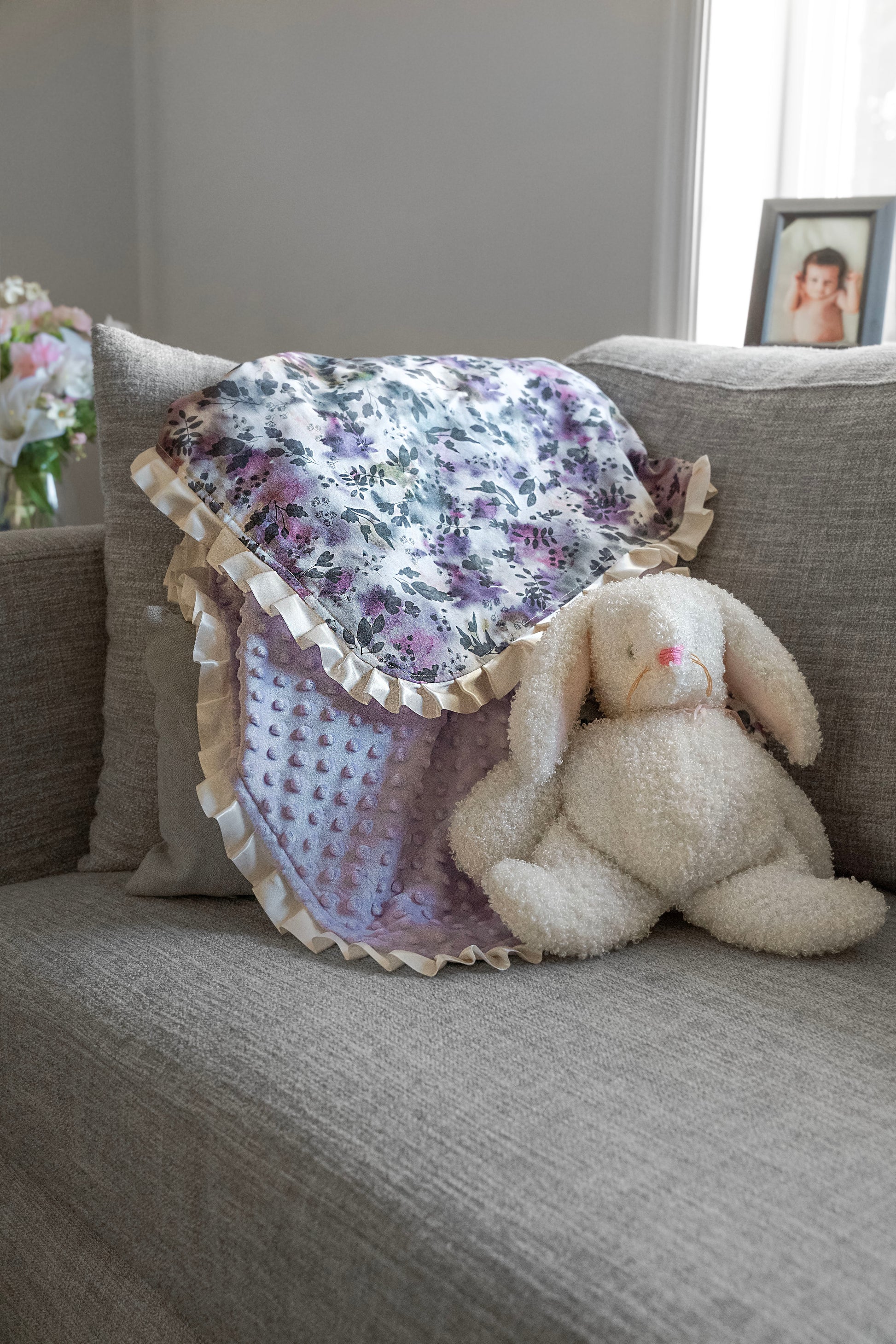 45" x 45" ultra-soft Cotton on Minky fabric with a Satin Ribbon edge